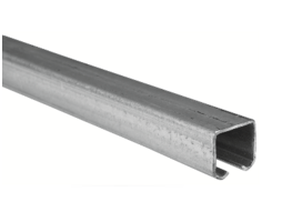 Dit C-profiel is de rail waar de schuifpoort in schuift / rolt. Hij is 300cm lang waardoor alle 3 de beschikbare lengtes poorten hier in gehangen kunnen worden. Eventueel verlengen kan door een bevestigingsplaat precies over de stuik te monteren. De rail is eenvoudig op maat te slijpen Gebruik 4 bevestigingsplaten per rail bij een schuifpoort poort van 116.5cm, en 5 bij poorten van 136.5 en 150cm.