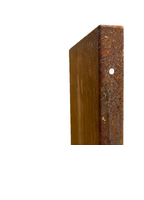 Onze panelen zijn gemaakt van 2mm dik cortenstaal. De randen zijn 3cm omgezet en daarna nog eens 1,5cm. De 4 hoeken zijn netjes dicht gelast.