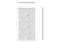 Onze panelen zijn gemaakt van 2mm dik cortenstaal. De randen zijn 3cm omgezet en daarna nog eens 1,5cm. De 4 hoeken zijn netjes dicht gelast. Aan de 2 lange zijden zitten 6 gaten van Ø6mm. Zo kan het paneel binnen vandaan met RVS schroeven aan een paal geschroefd worden. Ook aan de onderzijde van de panelen zitten gaatjes zodat er geen water in de randen blijft staan. Deze handzame cortenstalen panelen passen perfect bij de standaard afmeting van schuttingschermen.