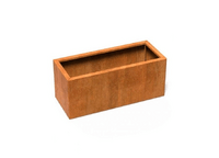 Deze rechthoek cortenstalen bloembakken zijn van zeer degelijke kwaliteit en gemaakt van 2mm dik staal. Het betreft een zelfbouwpakket, bestaande uit een bodem en 4 wanden. Door middel van bout/moer verbinding worden de losse onderdelen aan elkaar bevestigd. De omgezette bovenrand is 2.5cm breed en 1.5cm hoog. De hoeken hiervan zijn netjes op 45 graden omgezet zodat de hoeken mooi afgewerkt zijn. De rechthoek cortenstalen bloembak is leverbaar in diverse afmetingen. De bodem is voorzien van een gat zodat het hemelwater goed weg kan lopen. Het materiaal wordt aangeleverd in blank staal. Wij raden aan om de bak in elkaar te zetten en eerst te laten oxideren voordat deze op straat gezet wordt. Dit voorkomt nare roest-vlekken in het terras. De onderkant is vlak. Tegelhandel Boer levert bij elke bak 4 rubber matjes van 10x10cm. Plaats de cortenstalen planten op deze matjes zodat het er onder kan ventileren en er geen kalkvlekken ontstaan.