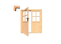 Voor wie een brede toegang wilt in de schuur of veranda, kiest voor deze dubbele deur. De deur is gemaakt van Douglas hout, is voorzien van rubberen strips en wordt geleverd inclusief hang- en sluitwerk en glazen ruit. Hij is qua loopdeur alleen leverbaar zoals afgebeeld, waarbij het linksdraaiende deel de loopdeur is. Het rechtsdraaiende deel zit met een pen vast in de onder- en bovendorpel. De deur heeft de volgende afmetingen: 2 deuren van 78x193 cm. De buitenwerkse afmeting van het kozijn is 169,7x201 cm. De inbouwmaat is 164,5x199,5 cm.