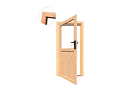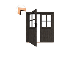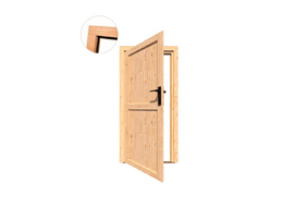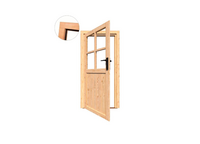Een solide deur voor de schuur of veranda. De deur is gemaakt van Douglas hout, is voorzien van rubberen strip en wordt geleverd inclusief hang- en sluitwerk. Ca 2/3 deel van de deur is van echt glas. De roedes worden er los bij geleverd, zodat je zelf kan kiezen of je ze wel of niet monteerd. De deur heeft de volgende afmetingen: De deur zelf is 78x193 cm. De buitenwerkse afmeting van het kozijn is 91x210,8 cm. De inbouwmaat is 86,5x199,5 cm.
