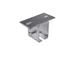 De geleiderail voor de schuifpoort kan op 2 manieren opgehangen worden. Met deze variant kan het ónder een de balk of regel gehangen worden. Met de verstelbare klauwen kan de rail vastgeklemd worden. Gebruik 5 bevestigingsplaten per rail van 3 mtr.